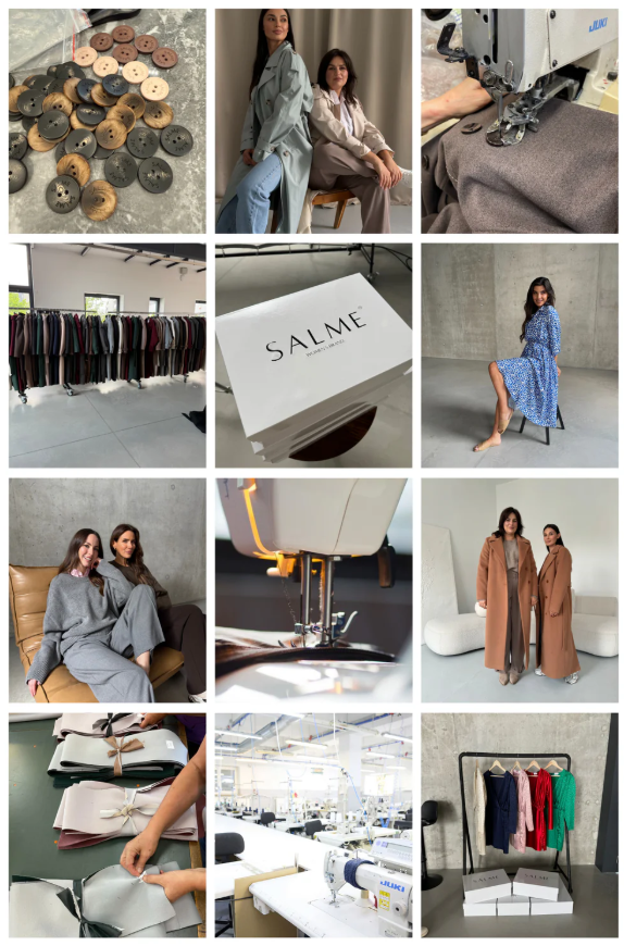 Salme to polska marka eleganckiej odzieży premium dla kobiet, specjalizująca się w płaszczach, garniturach i okryciach łączących klasykę z nowoczesnością. Dzięki własnej szwalni marka nie jest ograniczona w zakresie rozmiarów, kolorów czy fasonów. Salme działa w oparciu o rodzinne doświadczenie, polską produkcję i starannie wyselekcjonowane tkaniny. Jej misją jest dostarczanie kobietom jakościowych ubrań, które pozwalają poczuć się pięknie, stylowo i pewnie – każdego dnia.